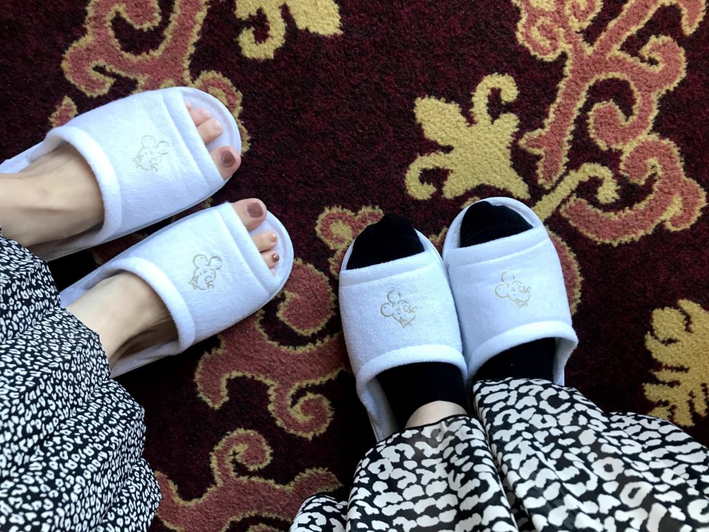 ミッキーが描かれたスリッパもおいてあったので、履いてぱしゃり