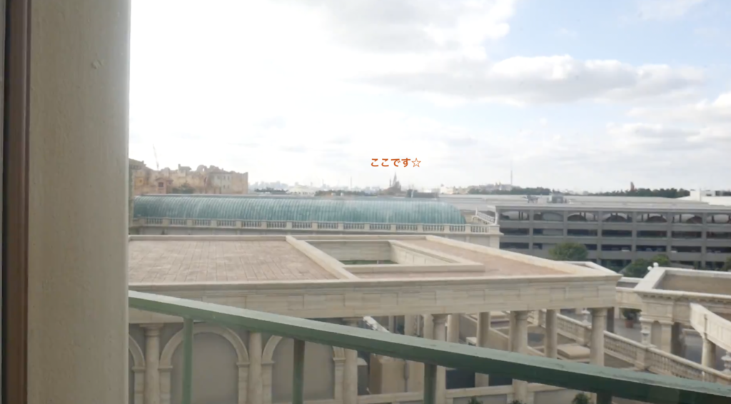正面玄関の前にある噴水が見えるのと、とおーーーーーくにシンデレラ城が見えます♡w