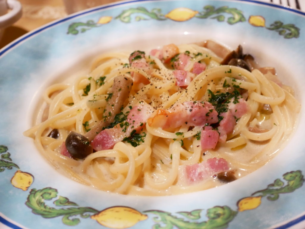 ⑨リングイネ、パンチェッタとキノコのクリームソース@カフェ・ポルトフィーノ 1,280円