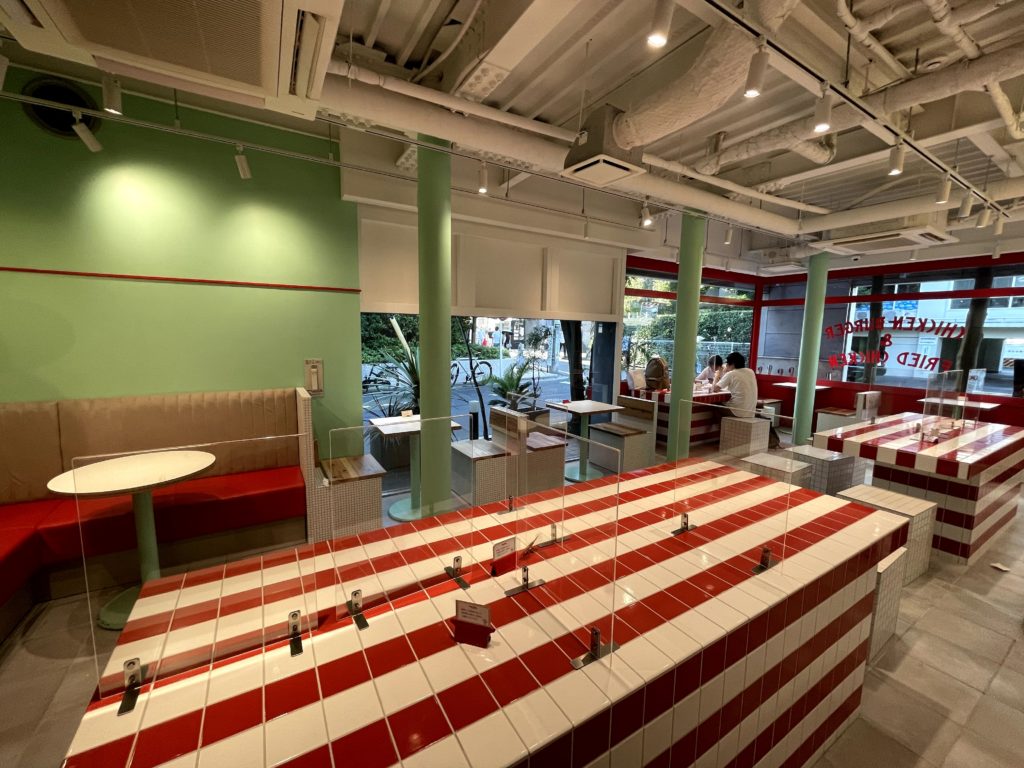 代官山に突如できたファストフード店です!チキンバーガー専門店なのですが、店内の雰囲気が完全にアメリカのファストフードです!(Mさんとはまた違う感じです 笑)