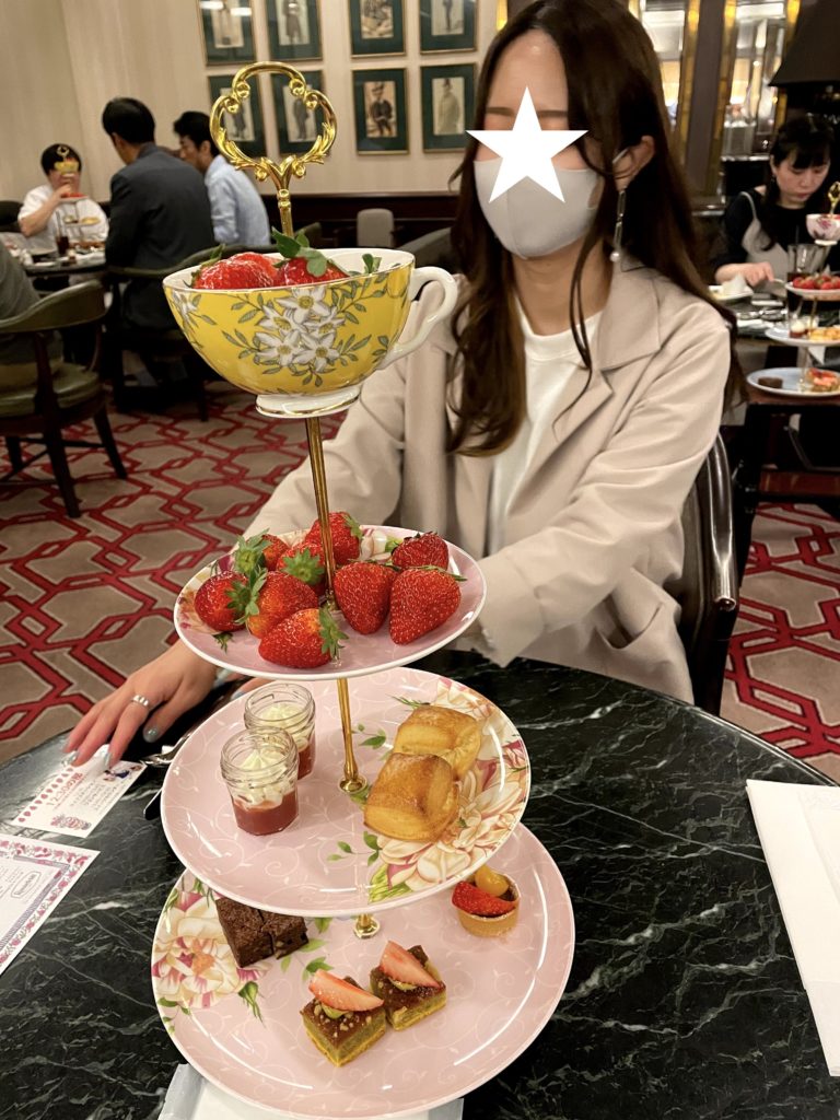 コロナ対策で混雑しないようにだと思うけど、席にはすでにアフタヌーンティーセットのようなものが置いてあった!写真映えでしかない♡