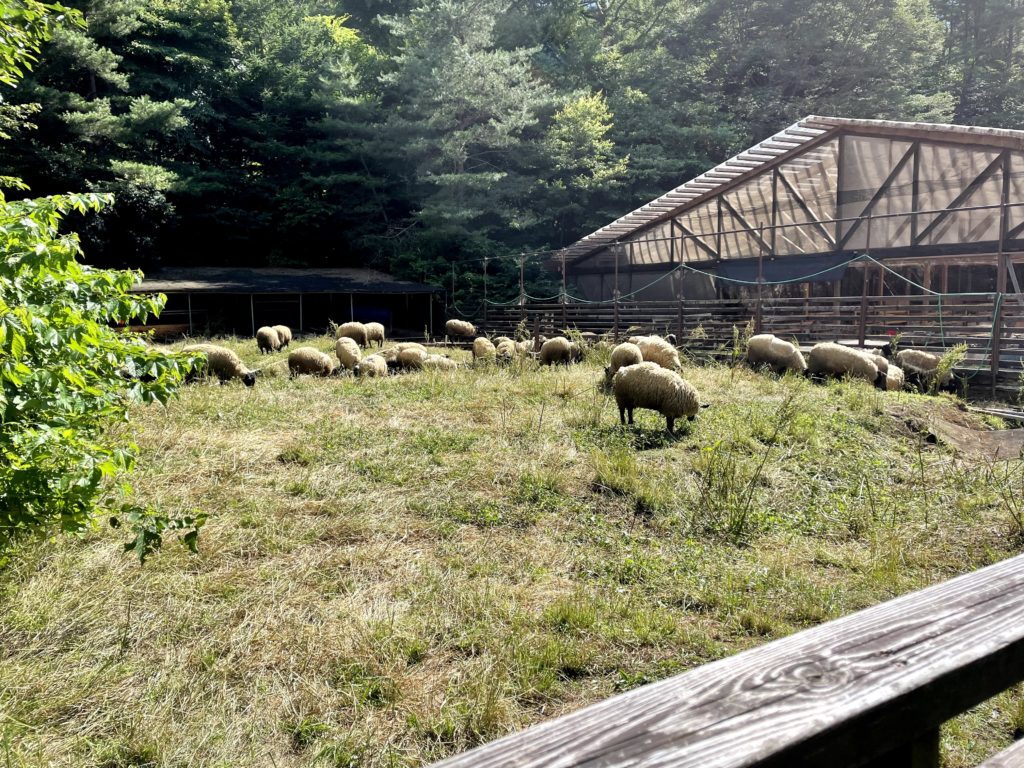 そして牧場に到着!着いてから知ったけど、エリア内に羊や馬、牛などがところどころに居て自由に触っていいよというシステムだったw