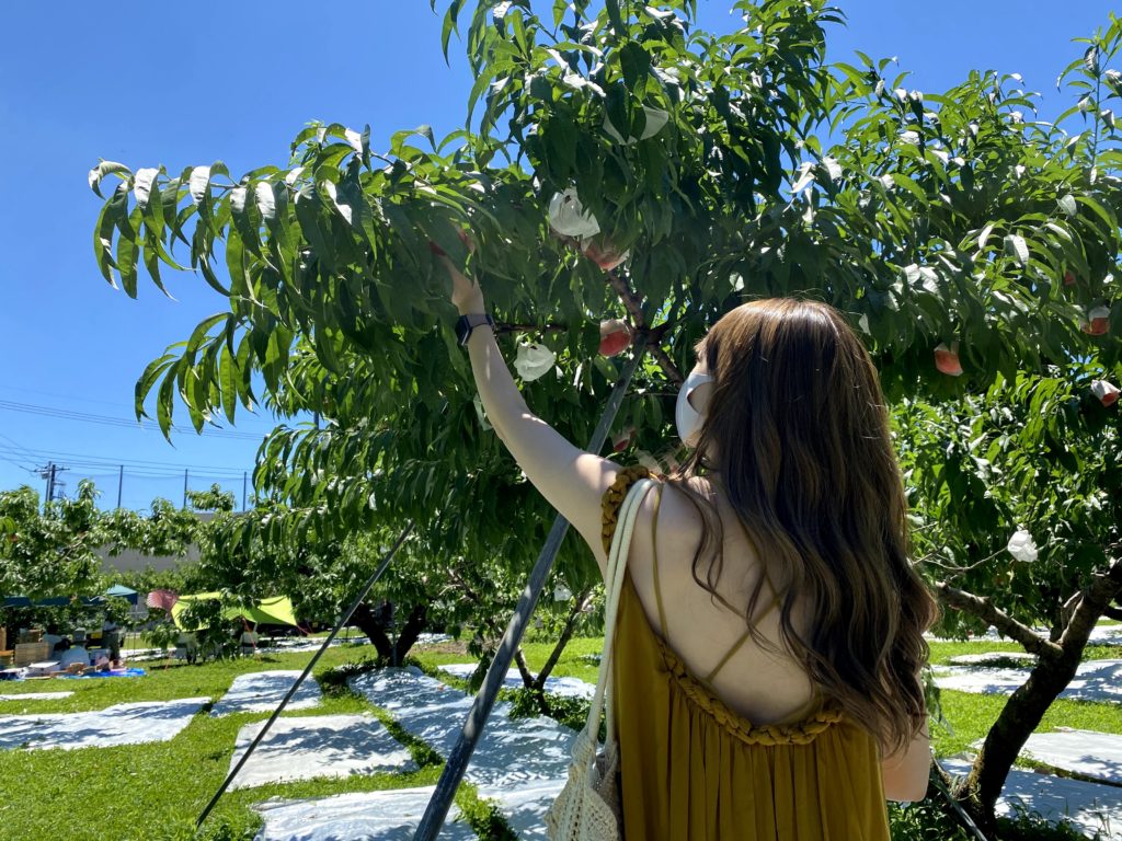 2021年7月17日は友達と山梨県に桃狩りへ🍑天気もよくてドライブ日和だったので最高の休みだった♡