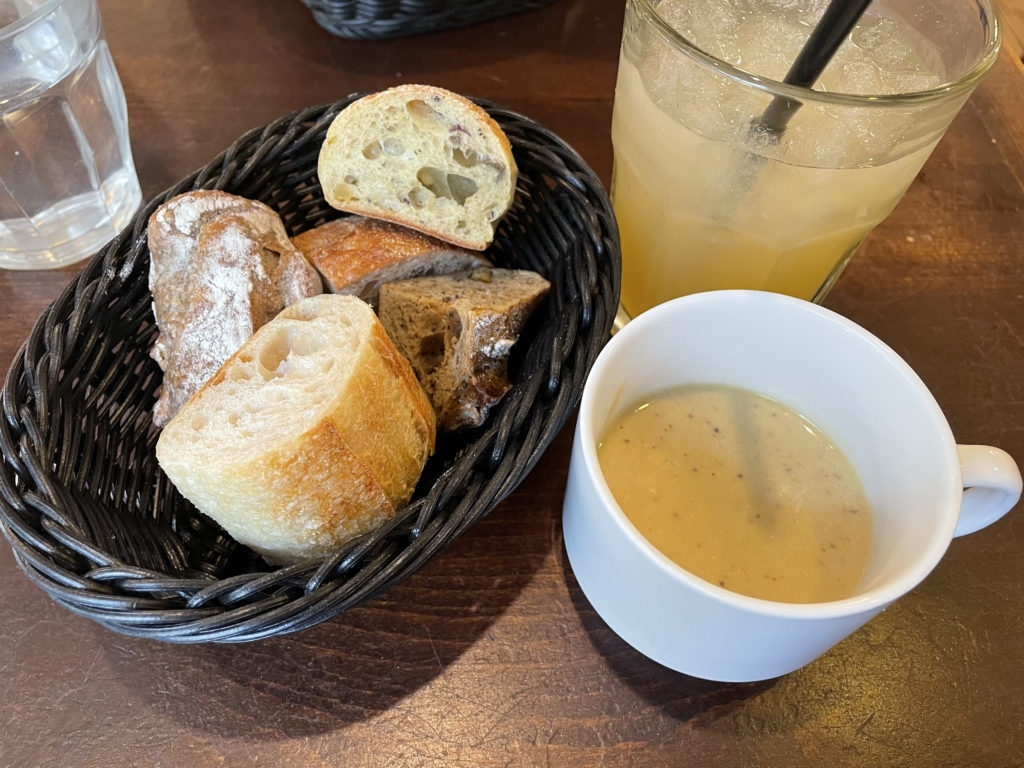 ランチはメインにドリンクとスープとパン食べ放題がついてて1500円くらい☆ついつい食べ過ぎちゃうので注意😂