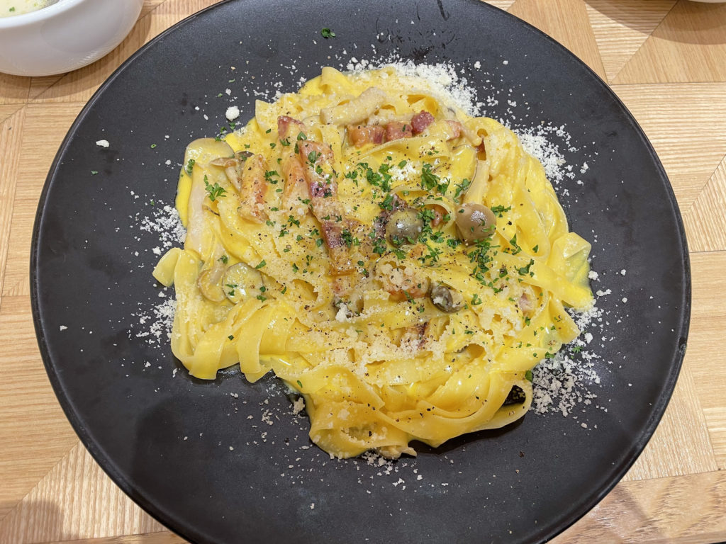 ヒカリエ内にあるパスタ屋さん!といっても生搾りモンブランが有名でまわりはモンブランを食べてる中、パスタいただきました😂