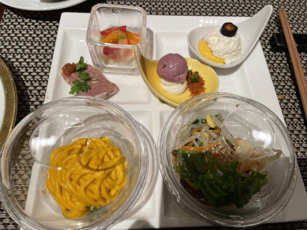 フォトウェディングの次の日は台風の影響で夕方まで大雨だったので家でゆっくりして夜にはやんでたから家族で予約していたホテルビュッフェへ😌